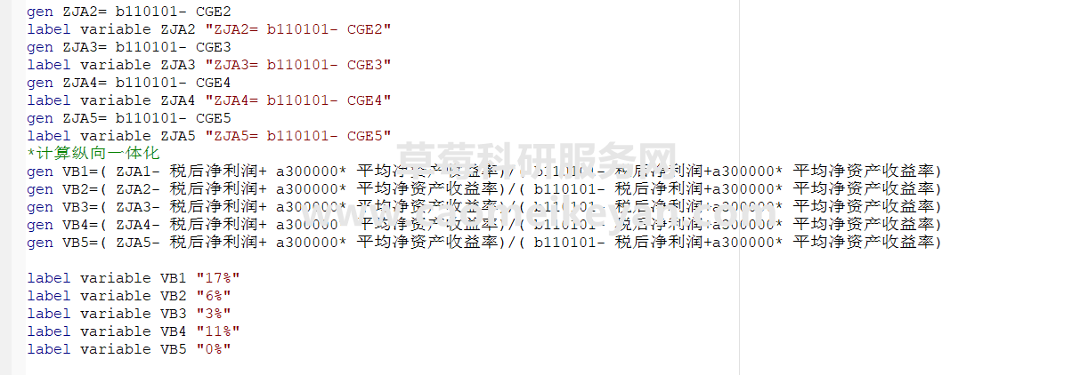 我们做了五种测算方式结果更加完善,分为VB1到VB5,具体测算方式如下方图片代码所示,大家可以做核心变量和稳健性检验!