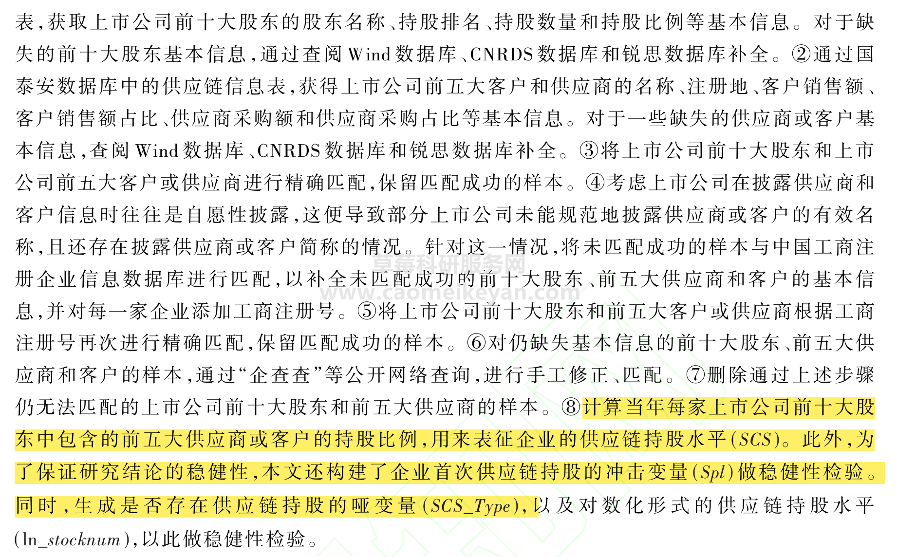 同时,生成是否存在供应链持股的哑变量(SCS_Type)。